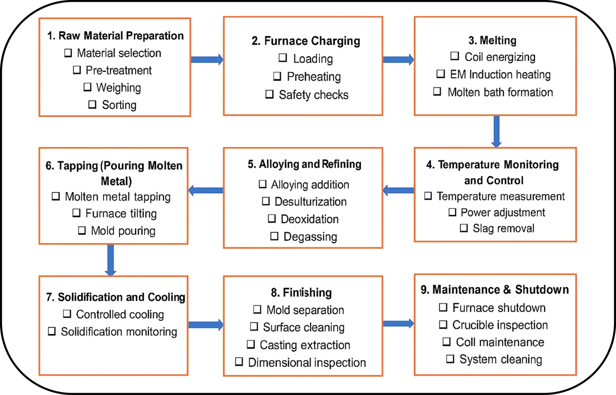 Flujo Operativo de un Horno de Inducción con Estructura de Acero